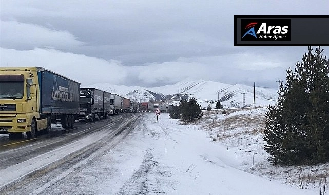 Ardahan'da yoğun kar yağışı ulaşımı etkiledi, ağır tonajlı araçlar Ilgar Dağı'ndan geçemedi.
