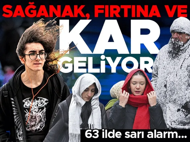 Meteoroloji Genel Müdürlüğü, hava koşullarında beklenen olumsuzluklara karşı 63 il için sarı kodlu alarm verirken kuvvetli yağış, kar ve fırtına uyarısı yaptı. Yapılan son değerlendirmelere göre, belirtilen illerde yaşayan vatandaşların dikkatli ve tedbirli olmaları istendi