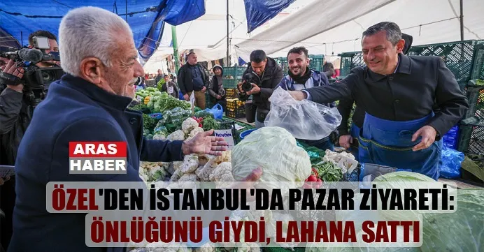 CHP Genel Başkanı Özgür Özel, İstanbul Bahçelievler'deki Yenibosna Pazaryeri'nde pazarcı esnafı ve vatandaşlarla bir araya gelerek sorunları dinledi. Tezgahın arkasına geçen Özel, önlüğü takıp lahana satışı yaptı.