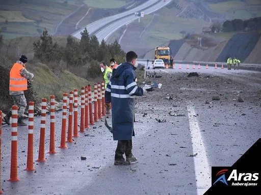 F-16 uçağının kaza kırıma uğradığı Naipli mevkisinde, İzmir- İstanbul Otoyolu trafiğe kapatıldı.