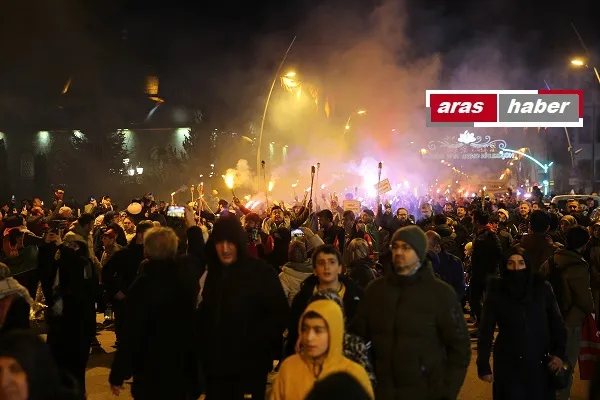 Lala Paşa Camisi önünde dualar eşliğinde başlayan yürüyüş, tekbir ve salavatlarla Çifte Minareli Medrese'nin önüne kadar sürdü.
