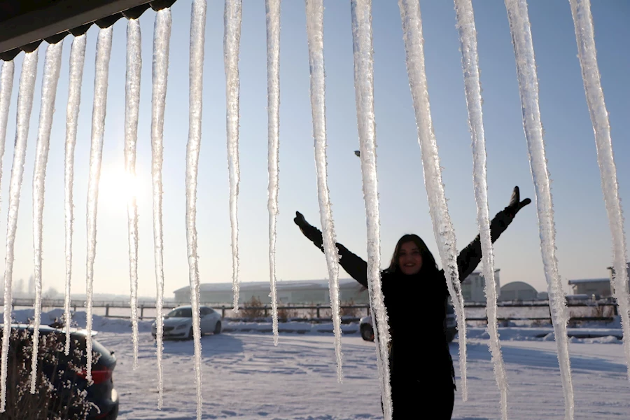 Öte yandan Erzurum'da soğuk hava nedeniyle çatılarda oluşan buz sarkıtların boyuysa 3 metreye ulaştı. Güzel görüntüler oluşturan sarkıtlar insan hayatı için tehlike oluşturuyor.