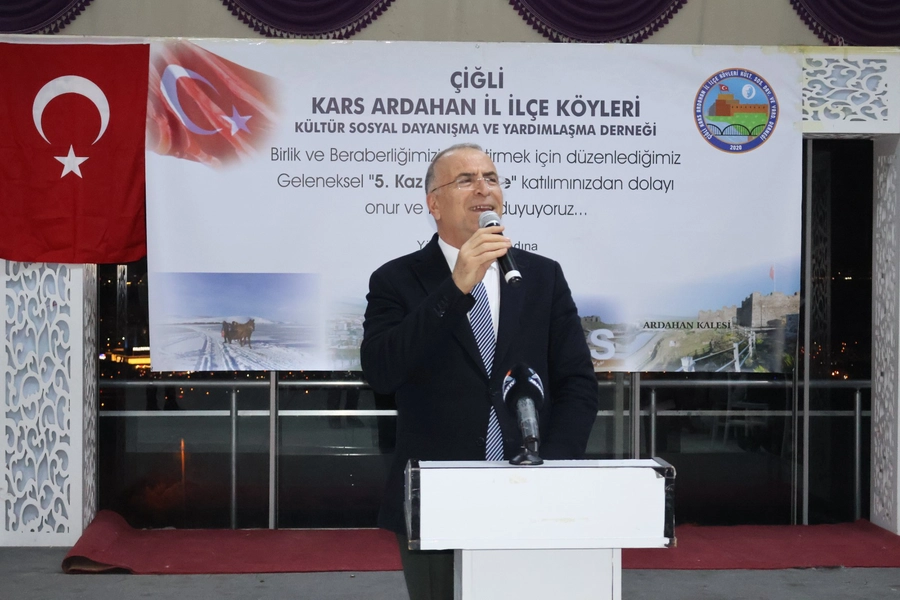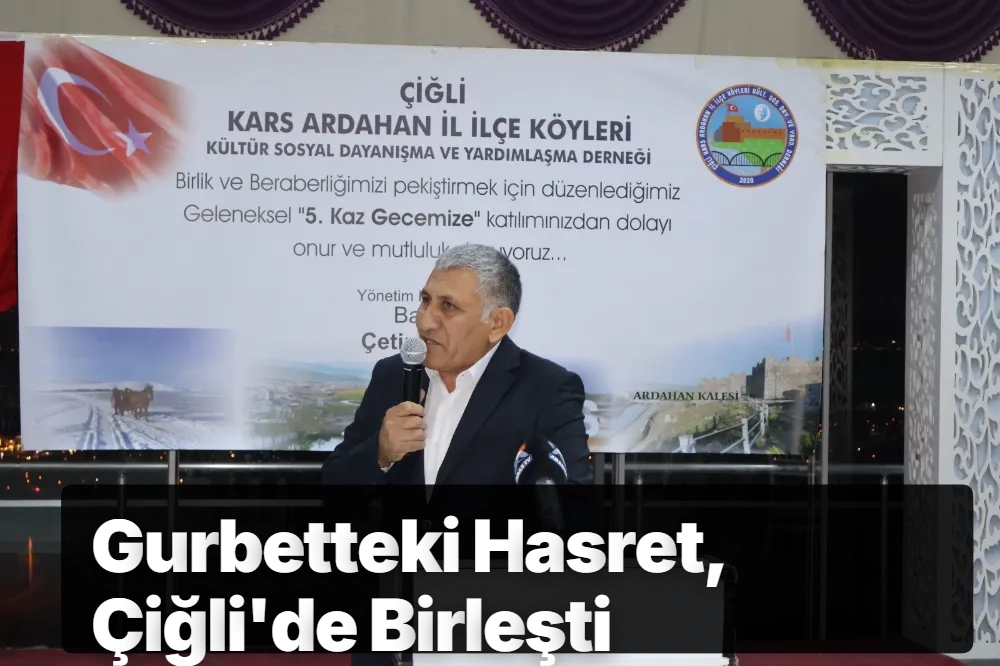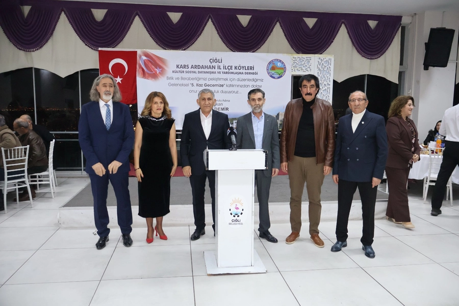İzmir'in Çiğli ilçesinde, belediyenin sosyal tesislerinde bir pazar günü... Kapıdan giren her hemşehri, sanki doğduğu topraklara adım atıyormuş gibi derin bir nefes aldı. Türkiye'nin en doğusundan kopup gelenler, Ege'nin sıcacık kucağında bir araya geldi. Çiğli Kars Ardahan il ilçe Köyleri Kültür Sosyal Dayanışma ve Yardımlaşma derneğinin düzenlediği 5. geleneksel kaz gecesi bu etkinlik, sadece bir buluşma değildi; gurbette yıllardır biriken hasretin, özlemin, anıların ta kendisiydi.
