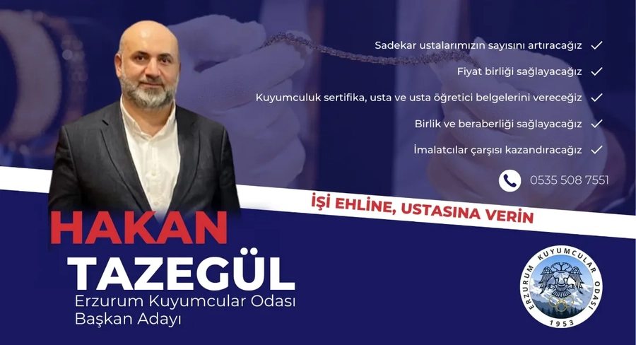 “Amacım, Erzurum Kuyumcular Odası’na kayıtlı esnaflarımızın her koşulda yanında olarak emeklerinin karşılığını almak için canla başla çalışmak, onların gönüllerine taht kurmaktır.”