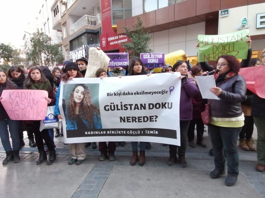 İzmir'de Kadın örgütleri, ‘Bir kişi daha eksilmeyeceğiz’ şiarıyla Gülistan Doku’nun akıbetini sormak için sokağa çıktı