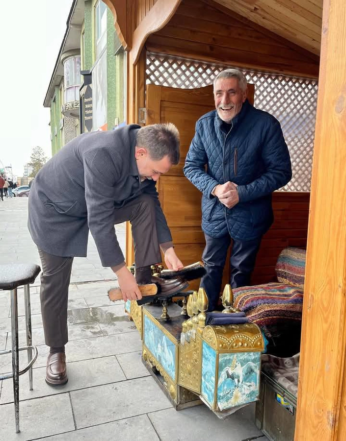 “İftar öncesinde Cumhuriyet Caddemizdeki emektar ayakkabı boyacısı ağabeylerimizi ziyaret ederek mübarek Kadir Gecelerini tebrik ettik. Alın teriyle helal kazancının peşinde olan kıymetli ağabeylerimize hayırlı ve bereketli kazançlar diliyor; aileleriyle birlikte sağlıklı ve huzurlu ömürler temenni ediyorum.”