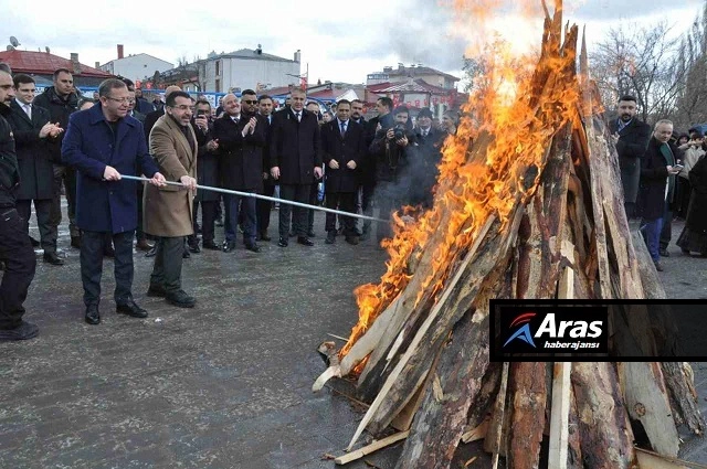 Vali Ziya Polat, Belediye Başkanı Ötüken Senger, Kafkas Üniversitesi Rektörü Prof. Dr. Hüsnü Kapu, AK Parti İl Başkanı Muammer Sancar, İl Kültür ve Turizm Müdürü Bayram Yığcı, nevruz ateşini yaktıktan sonra örste demir dövdü.