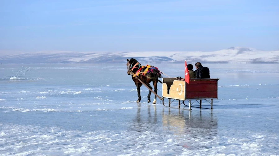 Türkiye'nin doğusunda yer alan ve yüzeyi kısmen buzla kaplanan Kars Çıldır Gölü'nde atlı kızak seferleri başladı. Cam gibi buz üzerinde dörtnala koşan atlar kızaklarda bulunan vatandaşlar unutulmaz anlar yaşıyor.
