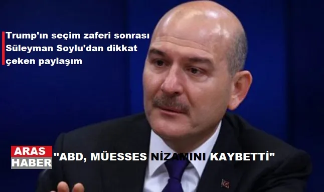 Tüm dünyanın kilitlendiği ABD seçimlerini resmi olmayan sonuçlara göre; Cumhuriyetçi Partinin adayı Donald Trump kazandı. Trump'ın zafer konuşması yaptığı esnada eski İçişleri Bakanı Süleyman Soylu'dan 'Gazze' çıkışı geldi.